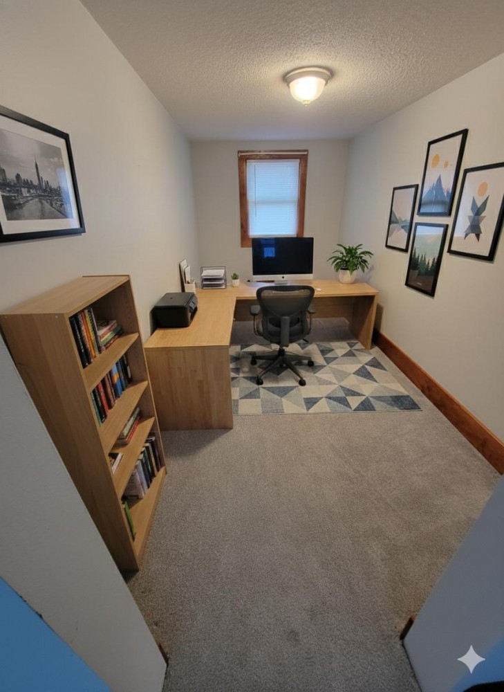 If you are looking for a home to grow in this is for you! Don't let the square footage deter you. No space is wasted in this spacious 1 & 1/2 story home. Open floor plan on main floor gives you ample room and many options. Large eat in kitchen, formal dining room and living room are almost contiguous. Main floor bedroom leads to main floor bathroom. In home office space with a comfortable wall heater gives you a place to work from home. Back porch leads to large laundry area with plenty of room for a mudroom & place to hang coats and boots. Kitchen has nice wood cabinets, electric range & refrigerator. Home has all new flooring carpet and easy-care vinyl in kitchen, laundry/mudroom & bathroom. Beautiful original stair banister leads to spacious 2 bedrooms with large walk-in closets. Walls, woodwork, windows & flooring all updated. Roof is 10 years old, furnace & Central AC 5 years, Water heater & water softener 2 years. Sewer lines all recently replaced to street. Exterior of home and 2 car detached garage was sided in 2014 with maintenance free vinyl siding. Alley access makes parking and entry to garage easy. All the work is done. Bring your furniture and move on in! Adair is located approximately 45 miles from West Des Moines. Easy commute with I-80 just blocks away.